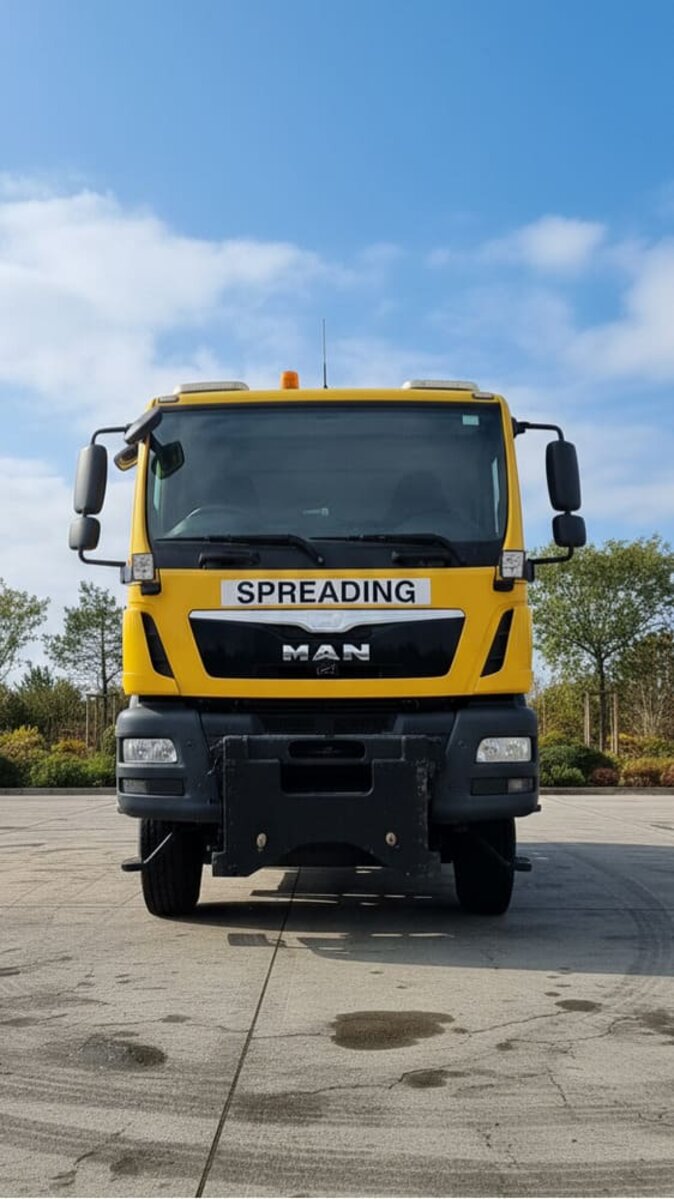 Zadbana i w pełni sprawny samochód MAN 18.250, gotowy do pracy w sezonie zimowym.