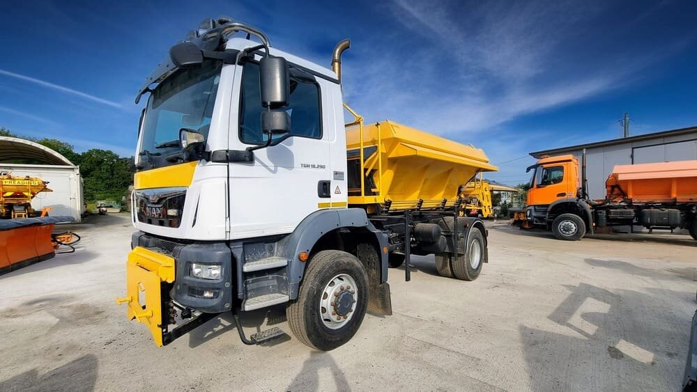 Zadbana i w pełni sprawna maszyna do odśnieżania MAN 18.290, gotowa do pracy w sezonie zimowym. Niezawodny sprzęt, który poradzi sobie z każdym wyzwaniem.