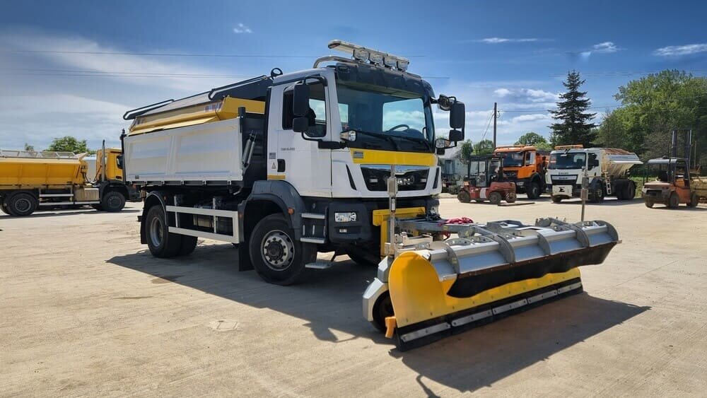 Zadbana i w pełni sprawna maszyna do odśnieżania MAN 18.290, gotowa do pracy w sezonie zimowym. Niezawodny sprzęt, który poradzi sobie z każdym wyzwaniem.