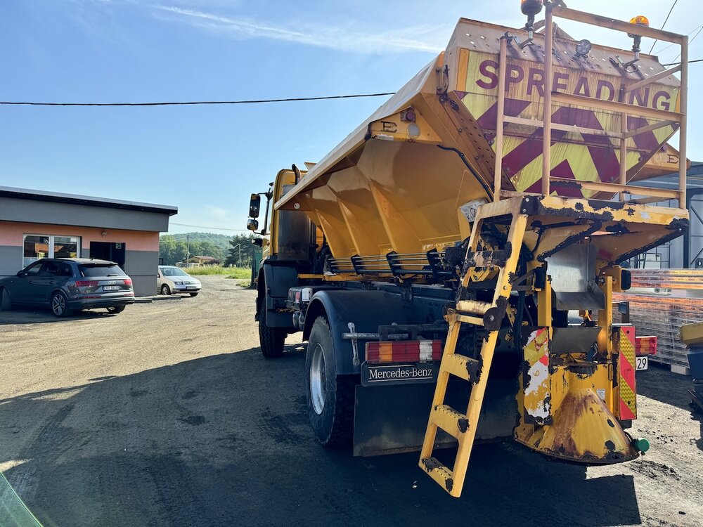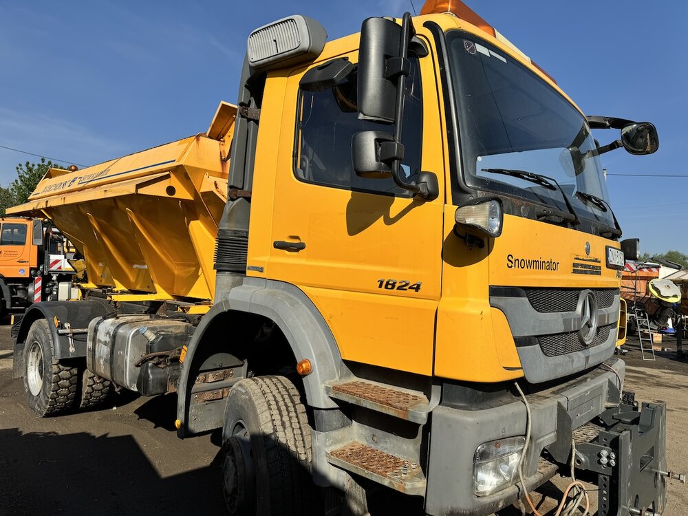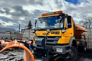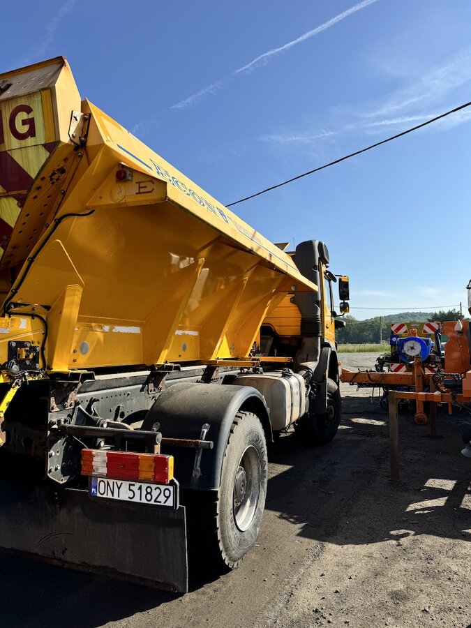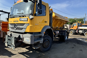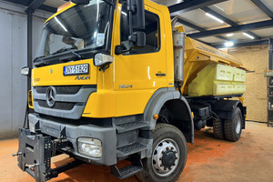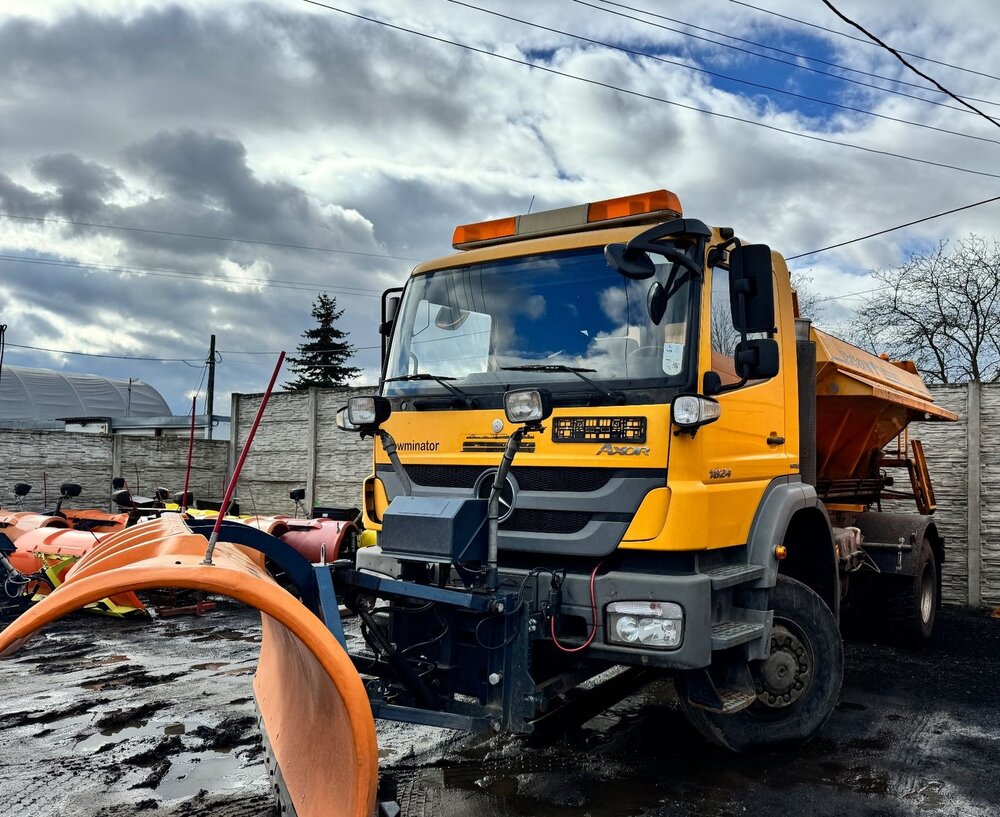 SAMOCHÓD CIĘŻAROWY MERCEDES AXOR 1824 4X4 (Euro 5) -pojazd w wersji komunalnej, -fabrycznie zabudowany pługiem i piaskarką, -napęd 4x4 z dodatkowymi blokadami mostów, -czołownica do montażu urządzeń komunalnych, -przebieg - udokumentowany książką serwisową, -pojazd zakupiony od urzędu gminy - nieużytkowany prywatnie i zawsze serwisowany, -moc 240 KM. -zabudowa piaskarki z podajnikiem taśmowym o pojemności 6m3
