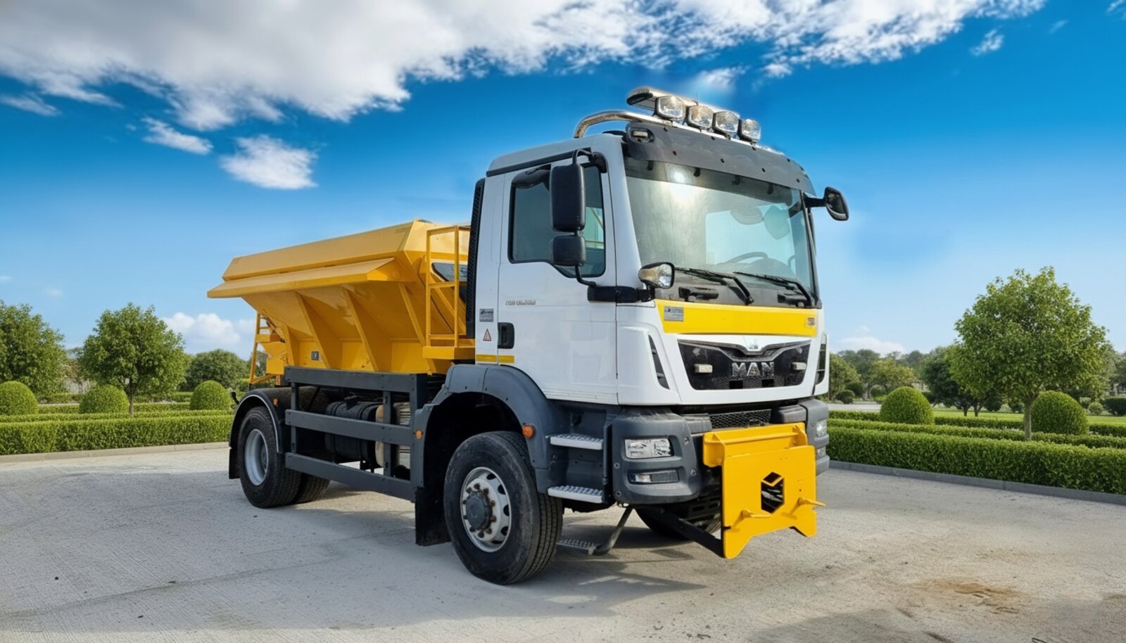 Zadbana i w pełni sprawna maszyna do odśnieżania MAN 18.290, gotowa do pracy w sezonie zimowym. Niezawodny sprzęt, który poradzi sobie z każdym wyzwaniem.