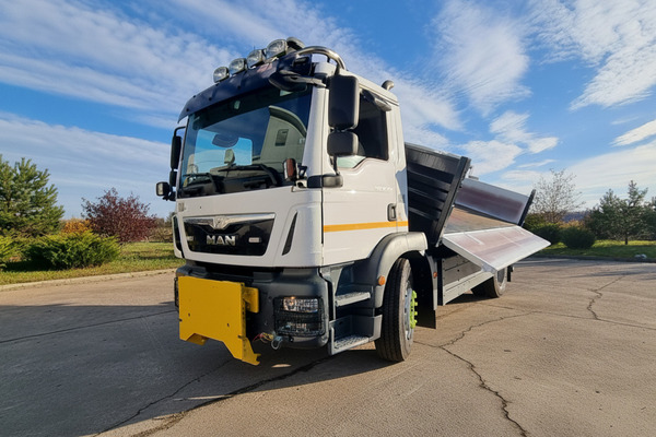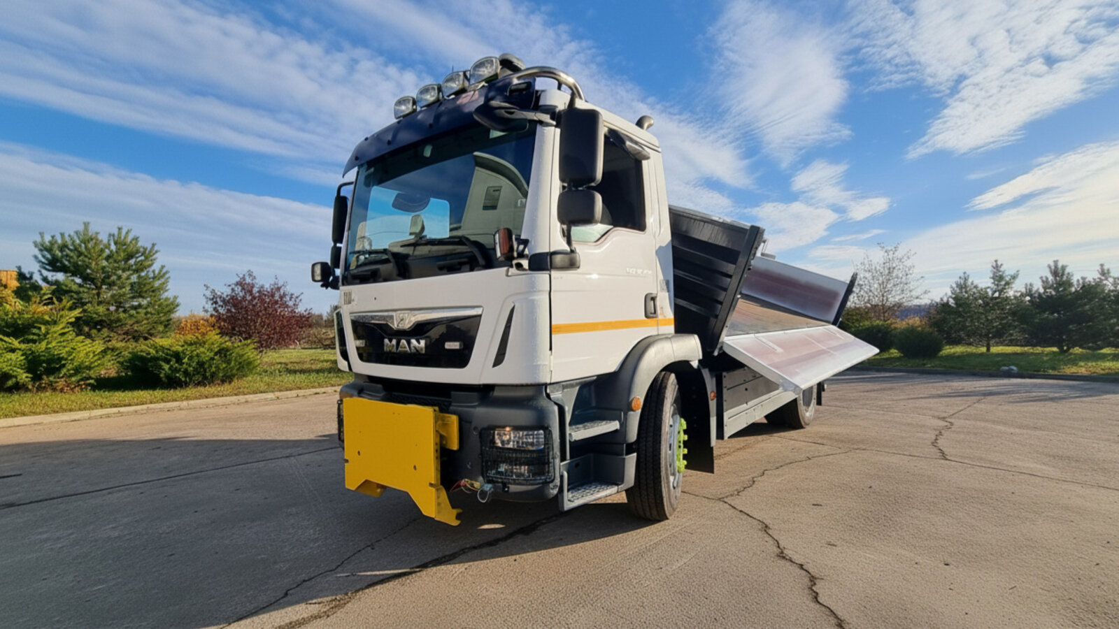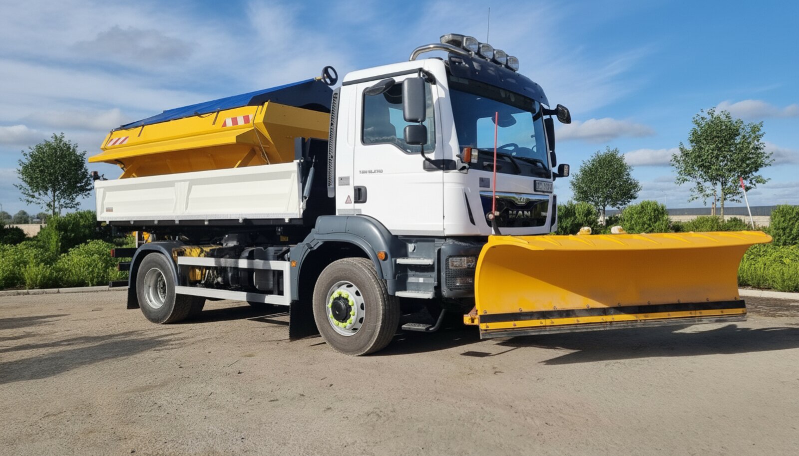 Zadbana i w pełni sprawna maszyna do odśnieżania MAN 18.290, gotowa do pracy w sezonie zimowym. Niezawodny sprzęt, który poradzi sobie z każdym wyzwaniem.